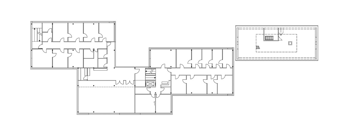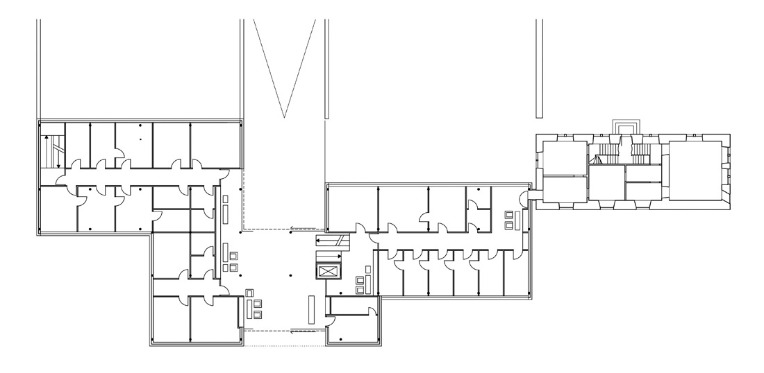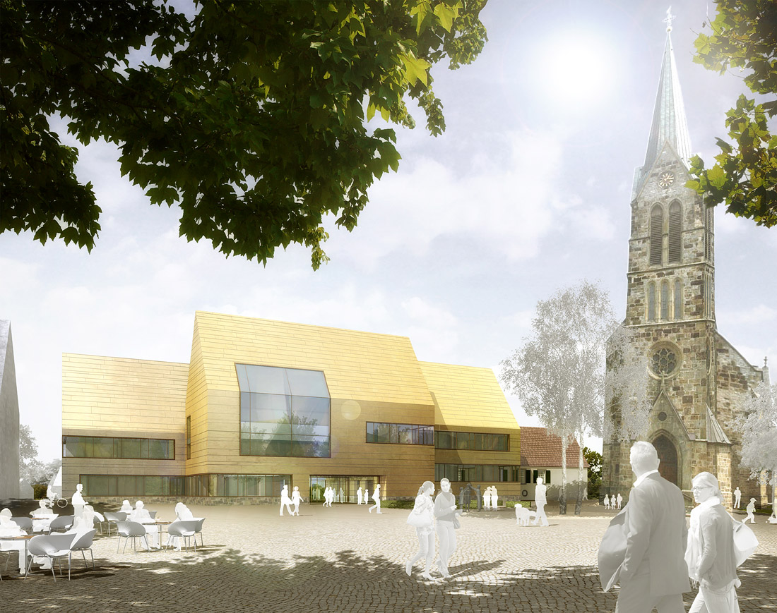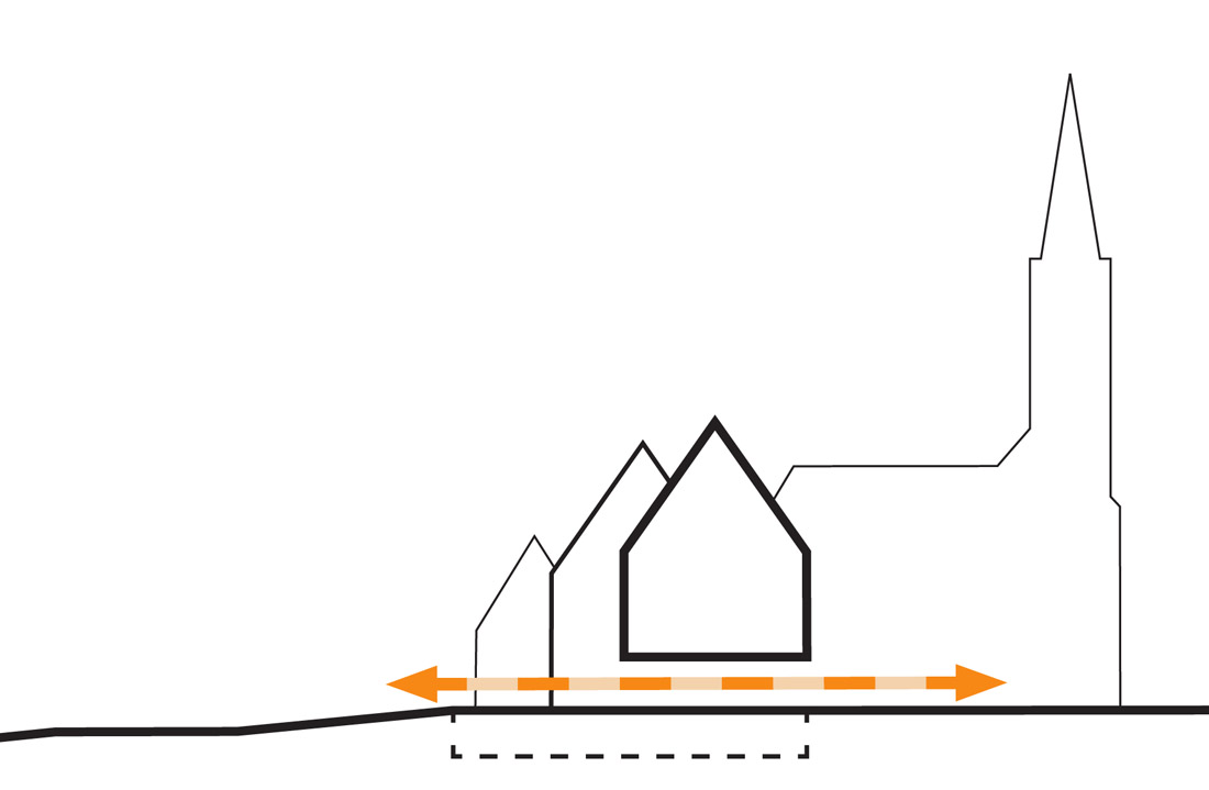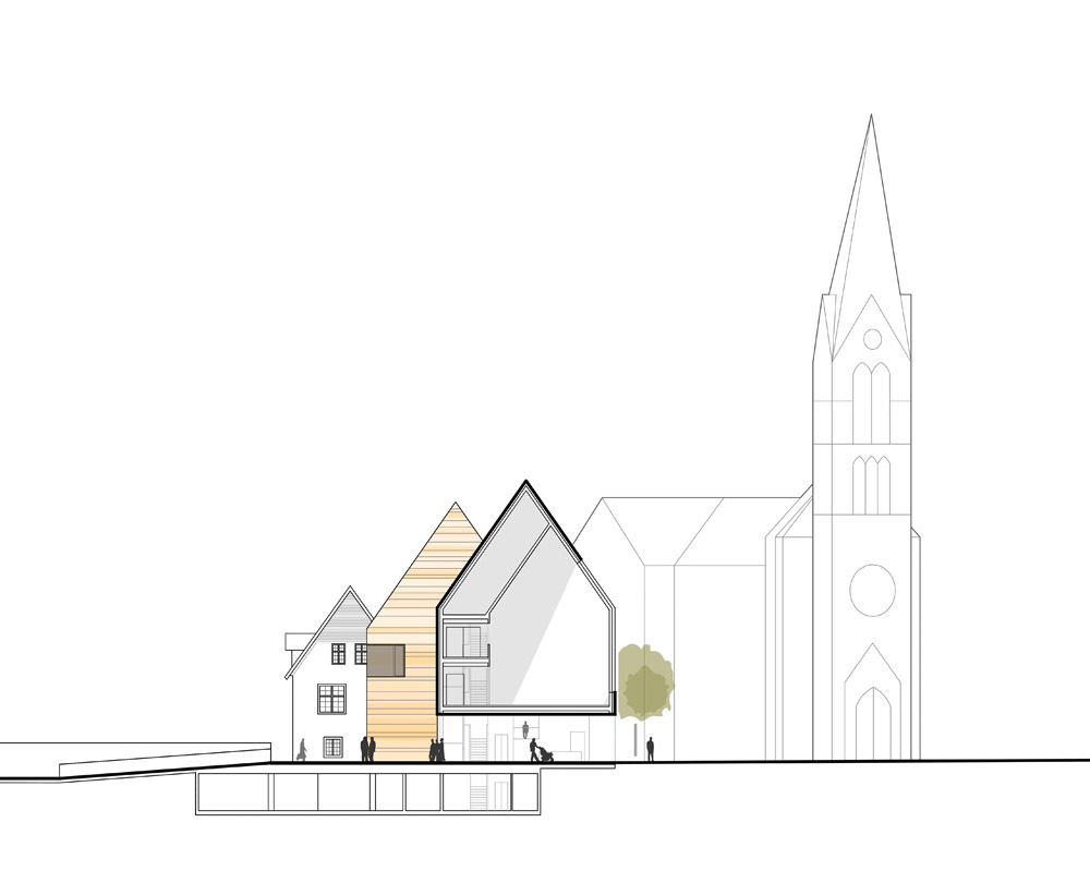 Der Neubau orientiert sich in seiner Größe und Masse am Volumen des Hauses Bissendorf und bezieht dieses als eines von vier Elementen in sein plastisches Spiel ein: Dachneigung, Proportionen und Maßstäbe korrespondieren miteinander. Die Beziehungen zwischen diesen vier Körpern sind unterschiedlich stark ausgeprägt: Sie berühren oder durchdringen sich oder sind durch eine Fuge voneinander getrennt.