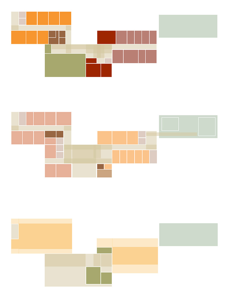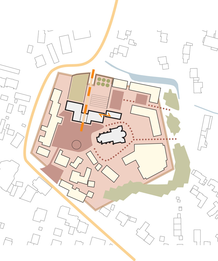 Die Höhe und Tiefe des gestaffelten Komplexes lässt einerseits die Betrachtung als Gesamtgebilde zu. Andererseits ermöglicht sie auch die Elemente mit ihren verschiedenen Charakteren einzeln wahrzunehmen. Die in Nuancen differenzierte Farbigkeit thematisiert die Ambivalenz von Individuum und Gemeinschaft.